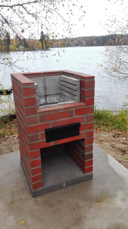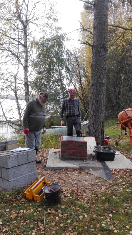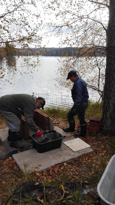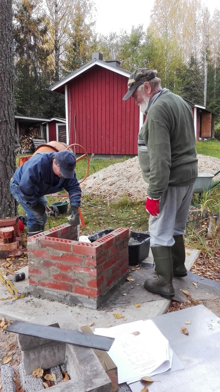 Ulkogrillin muuraustalkoot 27.9.2016. Kolme "muuraria" ensi kertaa alan töissä.